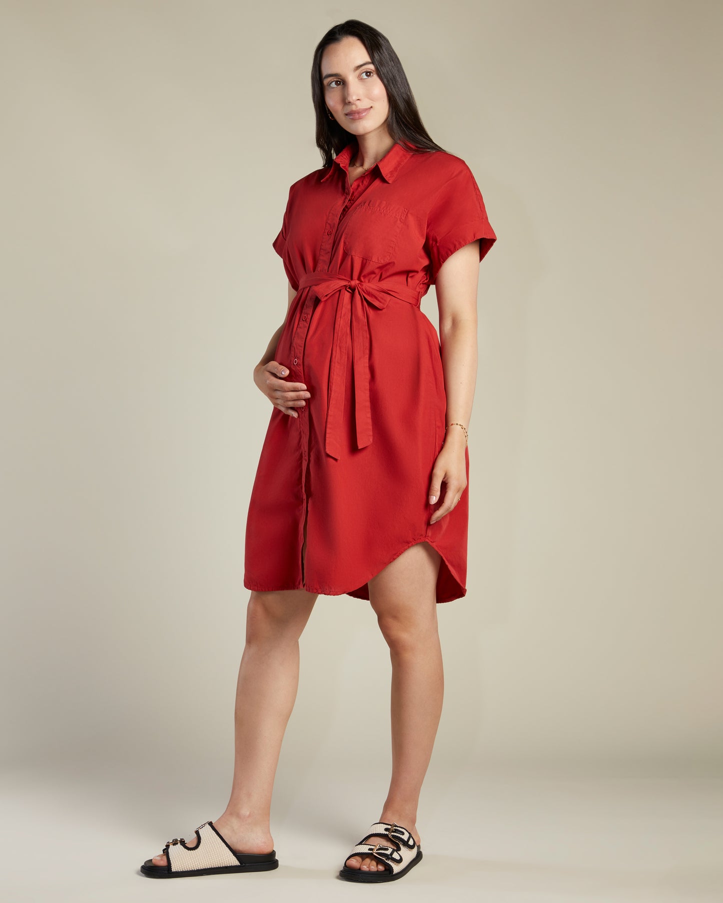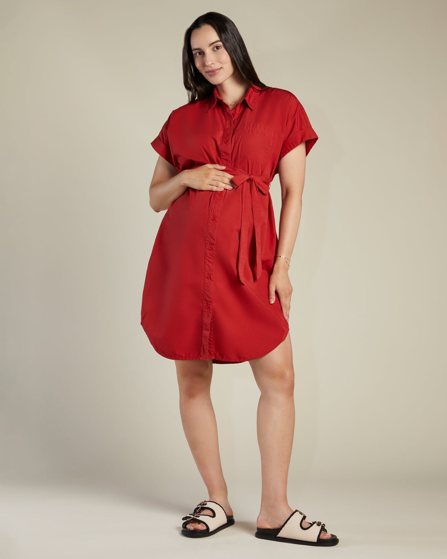 Easy, breezy, and timeless the Aspire shirt dress is a maternity staple you'll reach for again and again. Button-front styling allows for nursing access post-baby, while the relaxed silhouette and tie sleeves add a touch of charm. It's comfort without compromising on personal style.
