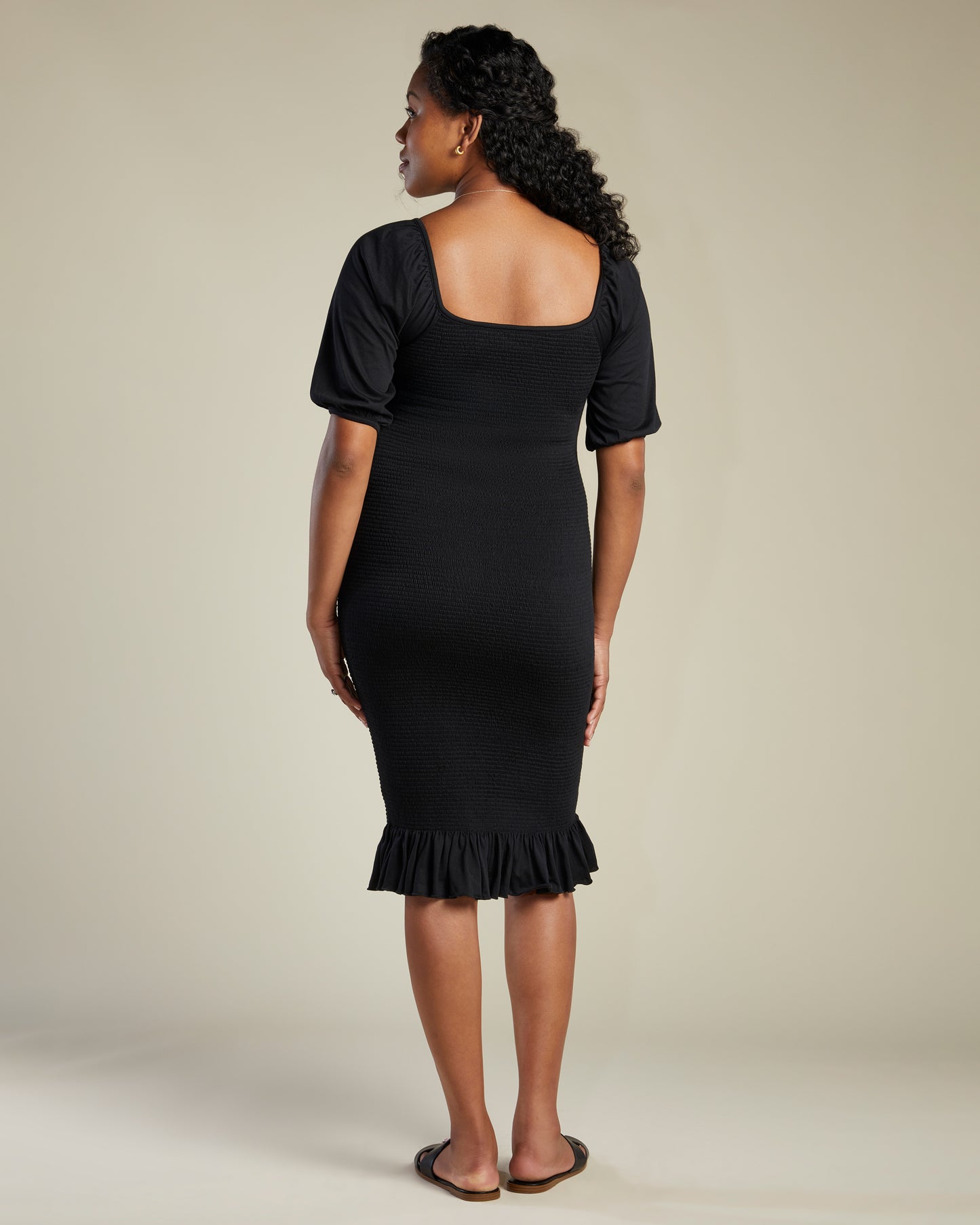 Sophisticated and chic, the Nest Smocked Dress is designed for all-day comfort with a sweet, puff-sleeve twist. The fully smocked bodice stretches gently over your growing bump, while the flounced hem adds a soft, playful finish. Whether you're dressing up for a special occasion or simply stepping out in style, this dress brings charm to every trimester.