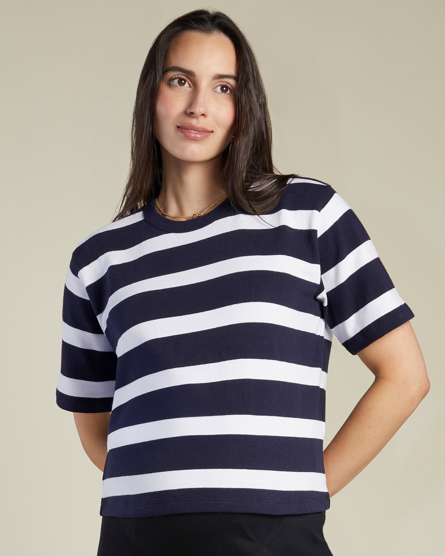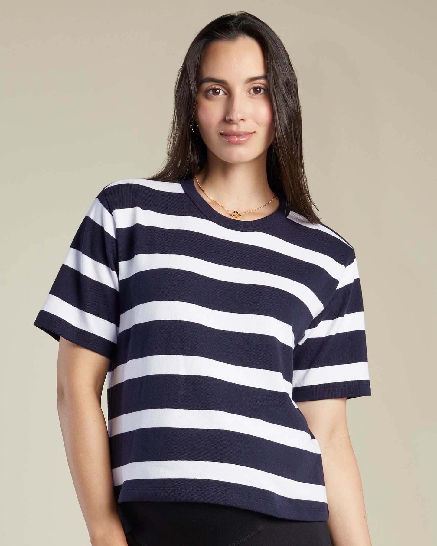 The Ease Short Sleeve Shirt in wide stripe is a crisp, everyday essential crafted from ultra-luxe cotton with a smooth, soft hand feel. Designed with a relaxed fit, it offers easy movement through all four trimesters. Finished with classic short sleeves and timeless stripes, it brings effortless polish to your wardrobe.